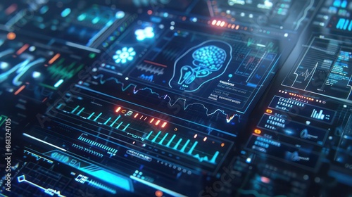 Closeup of a futuristic digital health monitoring system for medical business with ample copy space