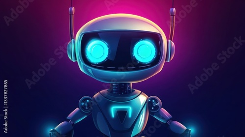 Close-up of a futuristic, friendly robot with glowing eyes and body parts.