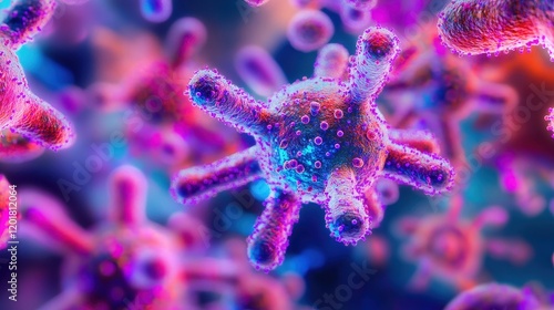 Close-up of a germ cluster in vibrant neon, [germ, microbiology, digital art], [psychedelic, hyper-detailed, glowing colors]