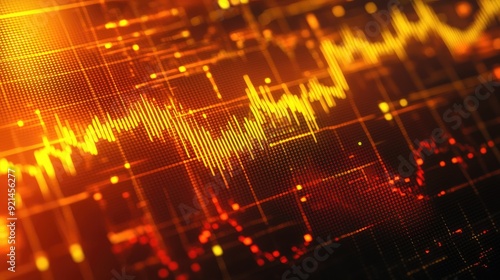 Close-up of a gold price chart on a digital screen with sharp upward trends and indicators.