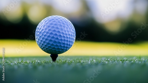 Close-Up of a Golf Ball on a Tee Surrounded by a Lush Green Grass Landscape in Soft Focus : Generative AI