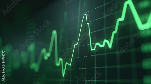 Close-up of a green stock market graph on a black background, symbolizing financial growth, analysis, and investment trends in the economy. Abstract blur background.
