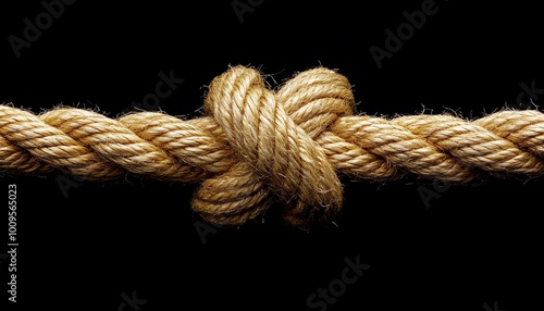 Close-up of a knotted rope against a black background, showcasing intricate details and textures in natural fibers.