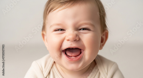 Close-up of a laughing baby, showcasing joyful expression and healthy teeth, symbolizing pure happiness and innocence