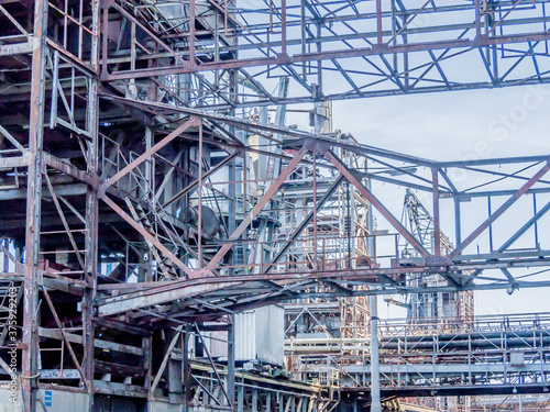 Closeup of a metal structure of an abandoned building that was once a factory in the city of Rotterdam in the Netherlands Hollandnd