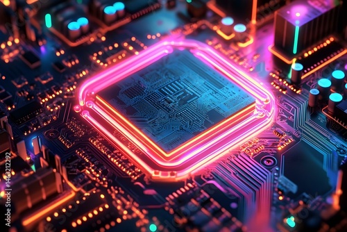 Close-Up of a Microchip Circuit Interior in a Computer System