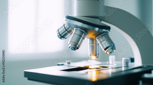Close-up of a microscope lens, representing precision medicine and personalized science. Advanced medical research, scientific discovery, personalized healthcare.
