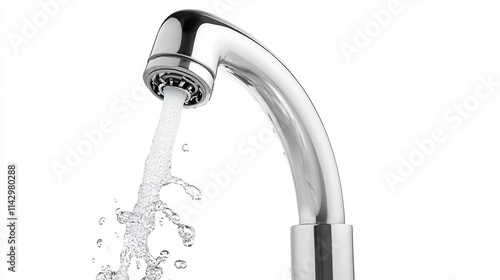 Close-up of a Modern Chrome Faucet with Water Flowing