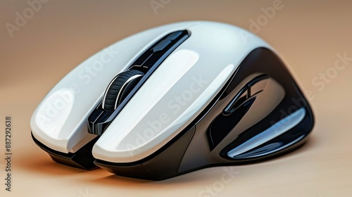 Close-up of a modern wireless computer mouse with a sleek ergonomic design, perfect for enhancing productivity and comfort during work or gaming.