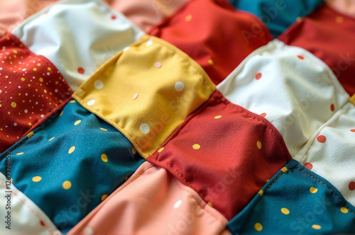 Close-up of a patchwork quilt showcasing the precision of the stitching. creativity hobby and handicrafts, diy, background for design.