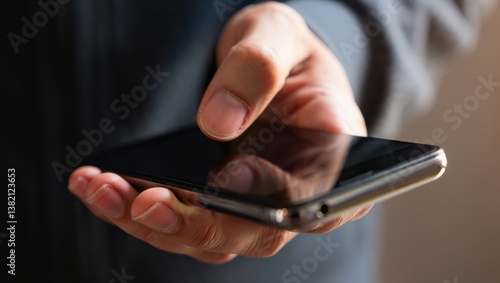 Close-up of a person holding a smartphone with a blurred background, showcasing modern technology in daily life