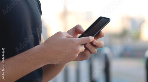 Close-up of a person using a smartphone outdoors, showcasing modern technology and communication in everyday life.