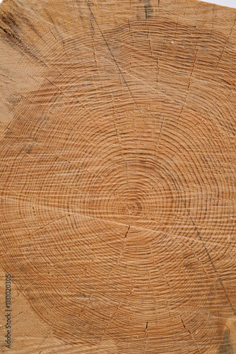 Close-up of a piece of wood in cross section with the texture of a wood ring. Organic wooden background.