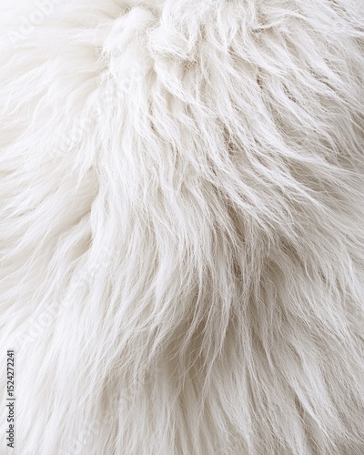 Close-up of a plush, off-white, textured fur surface with long, soft, and slightly wavy fibers. The texture is dense and fluffy