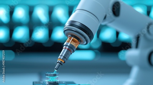 Close-up of a robotic arm performing precise tasks in a modern laboratory environment, showcasing advanced technology in action.