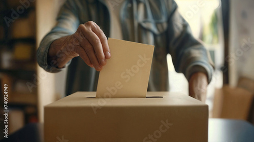 Close-Up of a Senior Hand Casting a Ballot into a Voting Box, Symbolizing Democratic Participation.