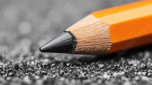 Close-up of a sharpened orange pencil tip resting on a textured black surface showcasing artistic tools and creativity concepts.
