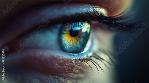 Close-up of a single tear rolling down a cheek, capturing raw emotion of sadness or grief, with soft lighting emphasizing the tear’s path and emotional depth.