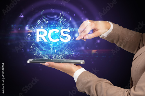 Close-up of a touchscreen with RCS abbreviation, modern technology concept