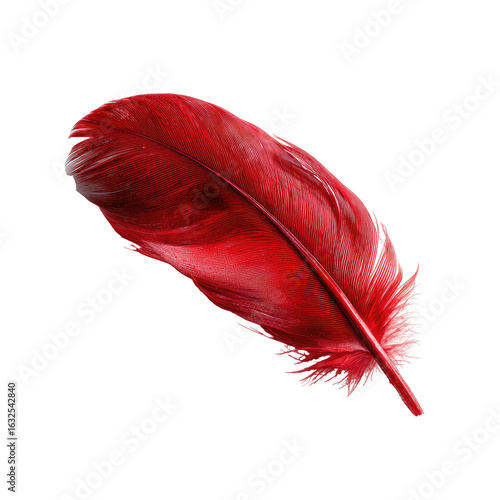 Close-up of a vibrant crimson feather. A single, red feather, sharply detailed against a black background, displays feathery texture