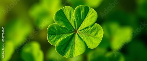 Close-up of a vibrant green four-leaf clover on a blurred background, four-leaf clover, botany