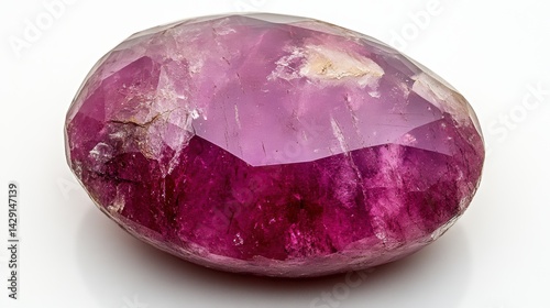 Close-up of a vibrant ruby gemstone with crisp texture and clarity, isolated on white background
