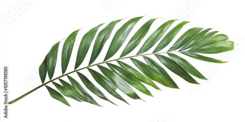 Close-up of a vivid green palm leaf against a white background, showing detailed texture and beauty. Captured with a professional DSLR camera, high resolution.