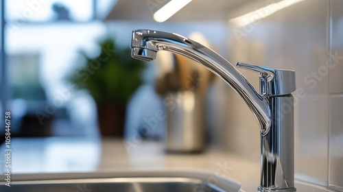 Close-up of a water cabinet handle, chrome finish reflecting subtle highlights in a modern kitchen.