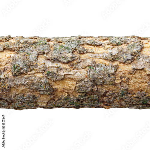 Close-up of a weathered log section, showing bark texture and varied tones of brown and beige. Natural wood grain is prominent