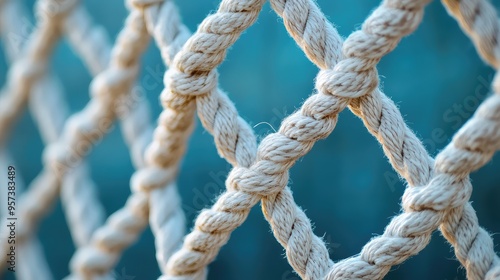 Close-Up of a White Volleyball Net Made of Twisted Rope with Interlaced Knots Forming Diamond-Shaped Holes