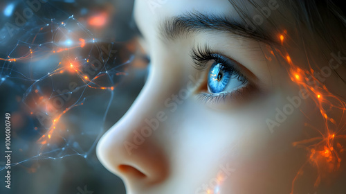 Close-up of a Woman's Eye with a Sparkly Glow