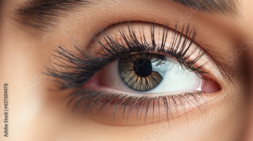 Close-up of a Woman's Eye with Long Eyelashes: A captivating close-up shot of a woman's eye, showcasing long, dark eyelashes and a mesmerizing hazel iris. The image is detailed and intimate.