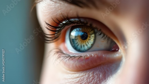 Close-Up of a Woman’s Eyes with Intricate Detail and Vibrant Colors, Highlighting Eye Health and Advertising a Trusted Medical Center Specializing in Eye Care