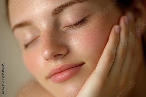 Closeup of a Woman's Face with Freckles and Closed Eyes