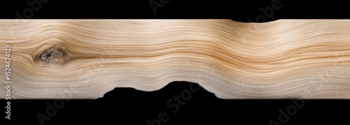 Close-up of a wooden surface with detailed natural grain patterns and a knot on a black background