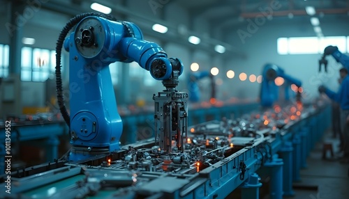 Close-up of a working machine in a factory, highlighting intricate details and mechanical components, ideal for industrial and engineering visuals