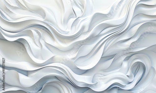 Close-up of abstract white fabric waves, showcasing a smooth and flowing texture with elegant, soft folds and curves.