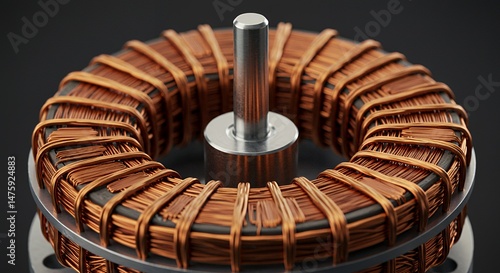 Close-up of an Electric Motor Rotor, showcasing intricate copper windings and metallic components. High-resolution image emphasizing industrial technology and precision engineering.