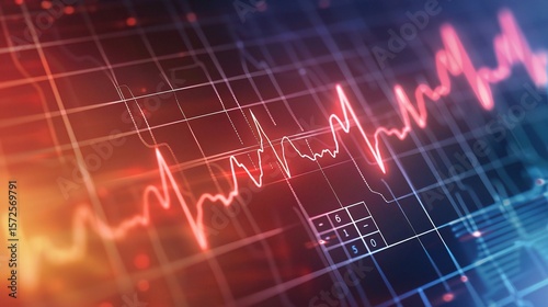 Close-up of an electrocardiogram (ECG) showing a printed graph with wavy lines representing heart activity, including P waves, QRS complexes, and T waves, displaying cardiac rhythm and electrical impu