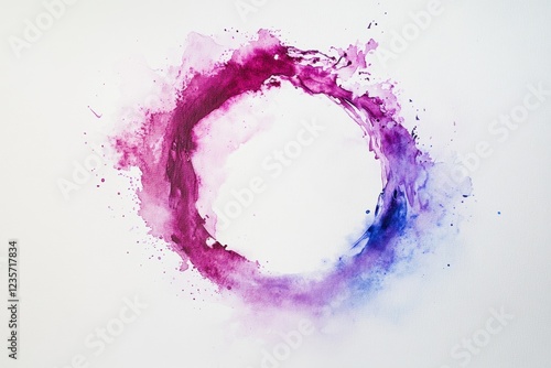 Closeup of an elegant ink drop forming a perfect circular shape with vivid colors, Close-up of a drop of ink forming a pretty circle on white paper, abstract art