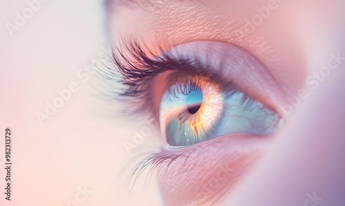Close-up of beautiful, ethereal eyes glowing with an inner light, Generative AI