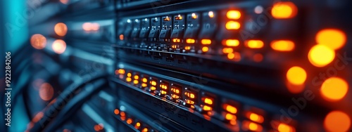 Close-Up of Blinking Lights on a Server in a Modern Data Center