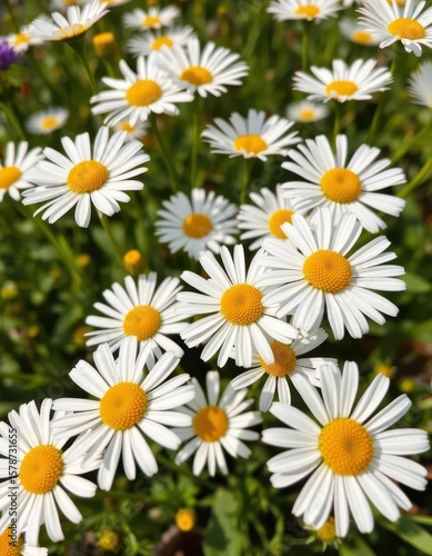 Close-up of blossoming white daisies with yellow centers in a vibrant natural setting, outdoor, flora