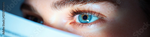 Close-up of Blue Eye Partially Obscured by Paper