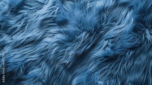 Close-up of bright blue synthetic fur showcasing soft, fluffy texture. Concept of fabric and textile texture.