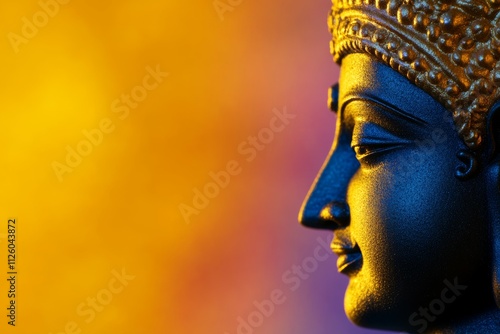 Close-up of buddha statue with vibrant background