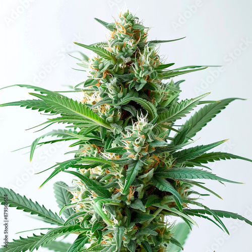 Close-Up of Cannabis Plant in Full Bloom Against White Background
