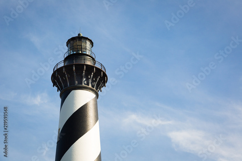Close-up of Cape Hatteras Light with a Blue Sky, Wispy Clouds and Copy Space