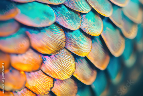 Close-up of colorful fish scales reflecting light with a metallic sheen.