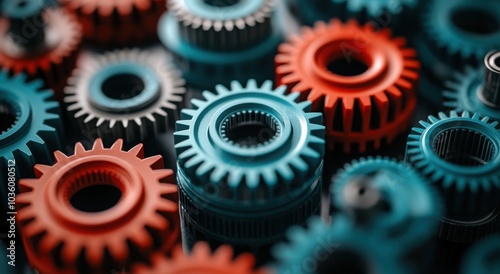 Close-up of colorful interlocking gears showcasing mechanical precision.